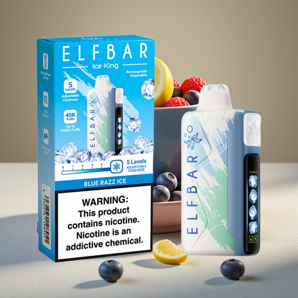 Elf Bar Ice King 40000 Puffs Vape Desechable con Batería Recargable 850mAh, Ajuste de Enfriamiento y Sabor Frambuesa Azul Hielo