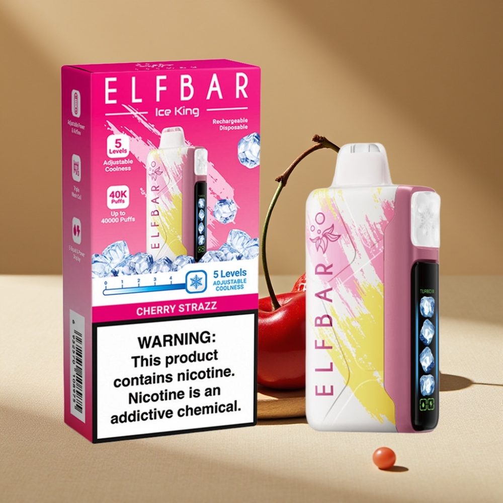 Elf Bar Ice King 40000 Puffs Vape Desechable Recargable Cereza Strazz – 20ml, 5% Nicotina, 850mAh, Niveles de Enfriamiento Ajustables, Pantalla LCD
