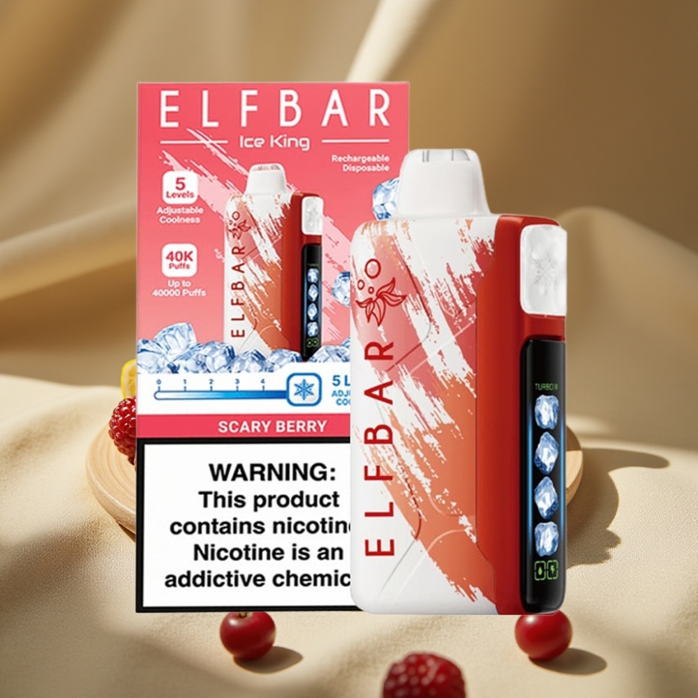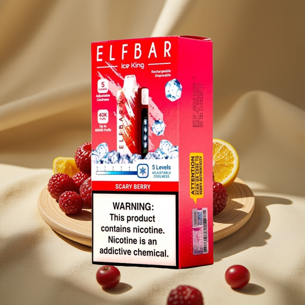Elf Bar Ice King 40000 Puffs Vape Desechable Recargable con Pantalla LCD, 20ml de E-Líquido, 5% de Nicotina, Niveles de Enfriamiento Ajustables y Sabor Baya Misteriosa