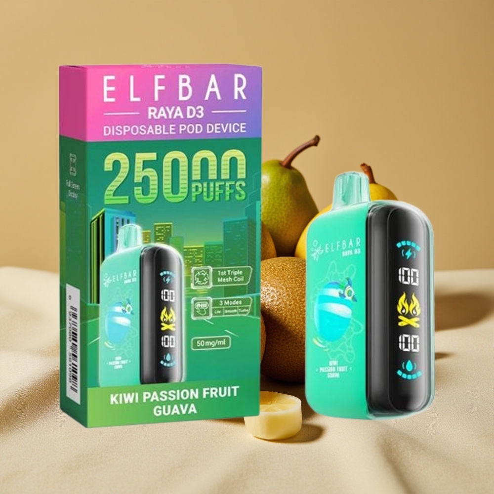 ELF BAR RAYA D3 25.000 Puffs Vape Desechable Recargable 23ml – Sabor Kiwi Maracuyá Guayaba