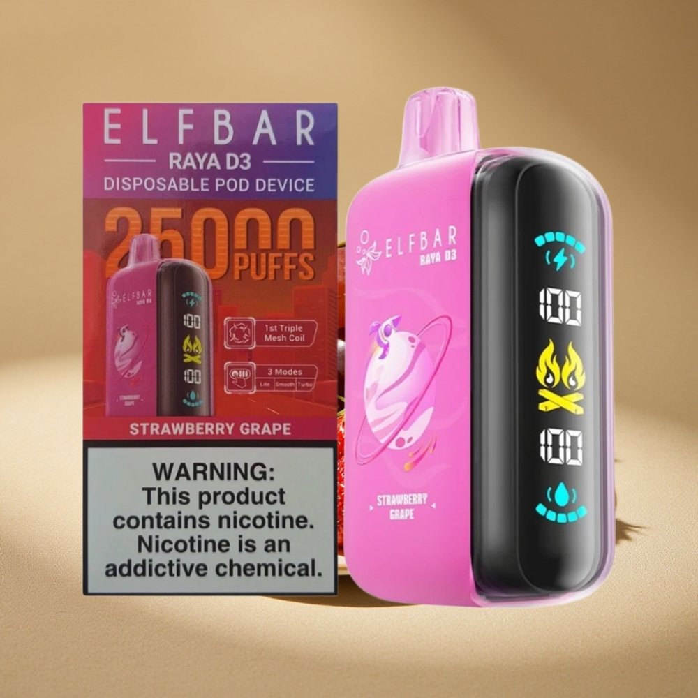 ELF BAR RAYA D3 25000 Puffs Vape Desechable Recargable 23ml 5% Nicotina – Fresa Uva