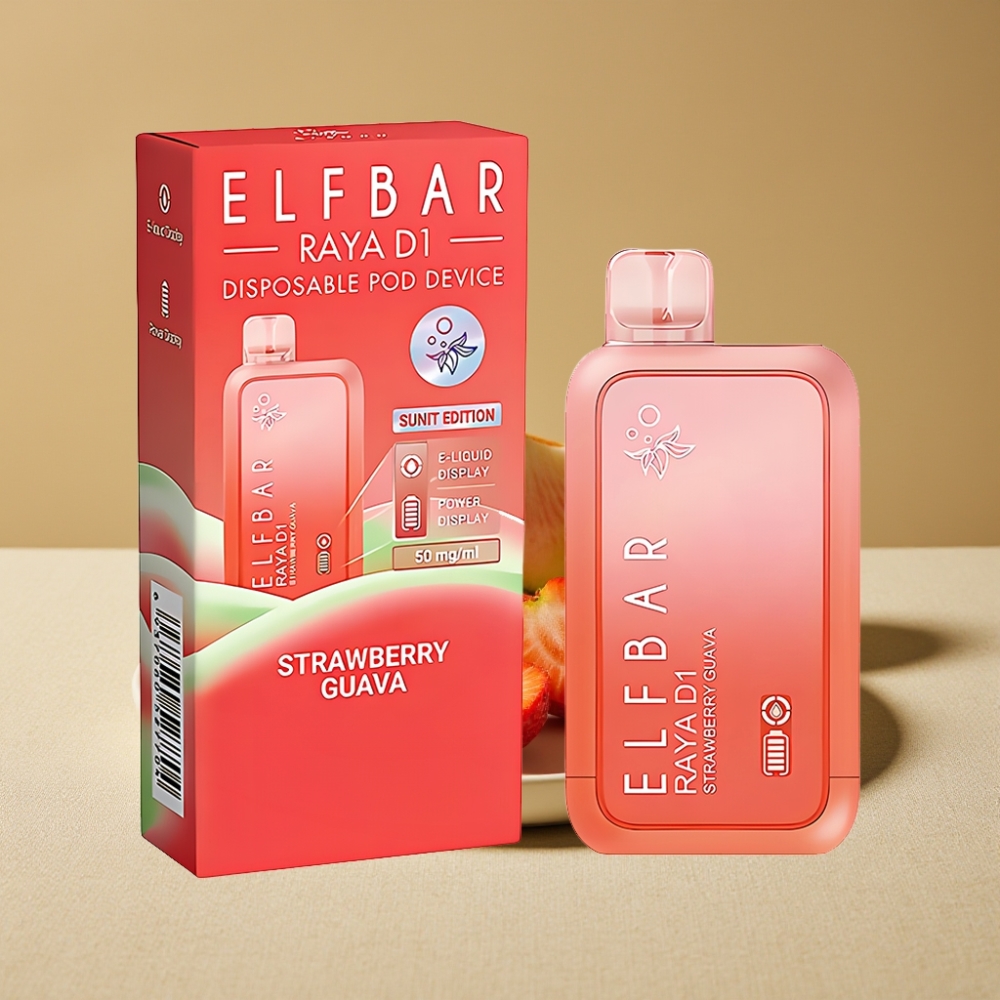 Elf Bar Raya D1 13000 Puffs Vape Desechable con Carga Tipo-C, Pantalla de E-líquido y Energía, Sabor Fresa Guayaba, 18ml, 5% Nicotina