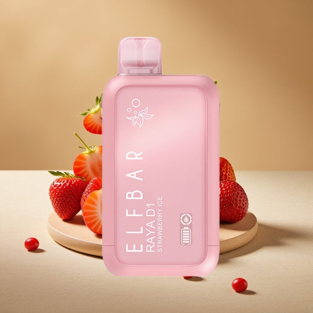 Elf Bar Raya D1 13000 Puffs Vape Desechable Fresa Helada con Pantalla de E-líquido, Batería Recargable 650mAh y Carga Tipo-C