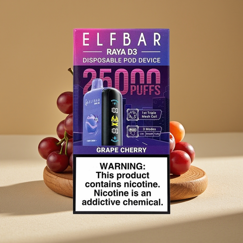 ELF BAR RAYA D3 25.000 Puffs Vape Desechable Recargable 850mAh 23ml Uva Cereza 5% Nicotina Pantalla Grande Tipo-C